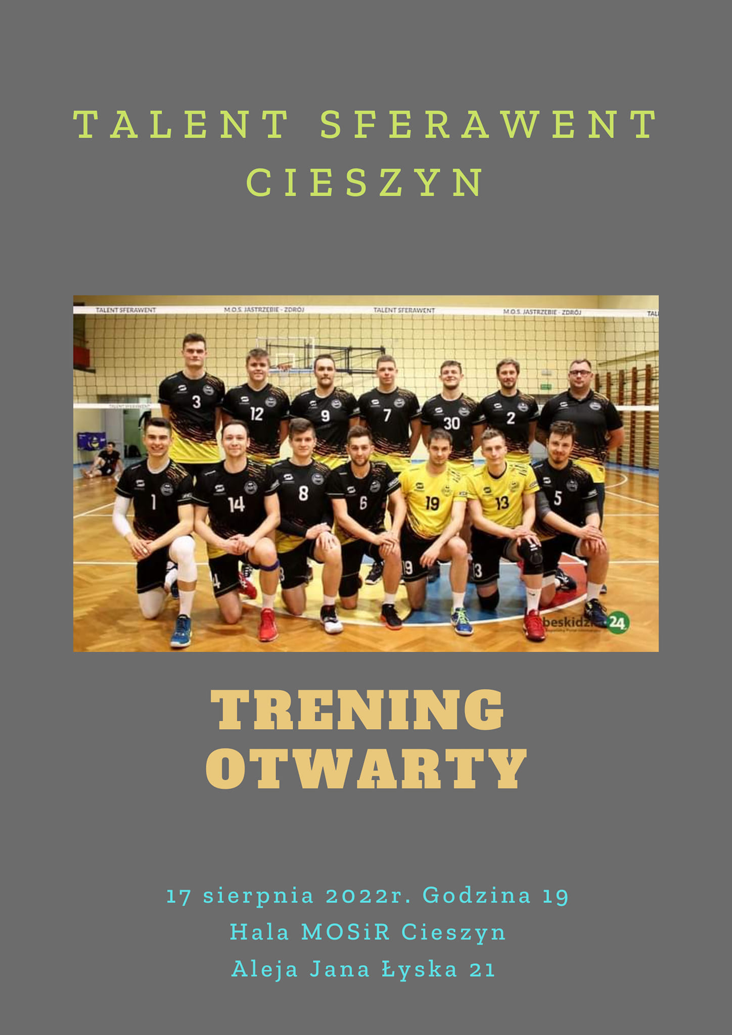 Naborowy trening siatkarzy Naborowy trening siatkarzy Poniedziałkowym (15 sierpnia) treningiem nasi siatkarze seniorskiej drużyny Talent Sferawent Cieszyn rozpoczynają przygotowania do nowego sezonu...Dowiedz się więcej