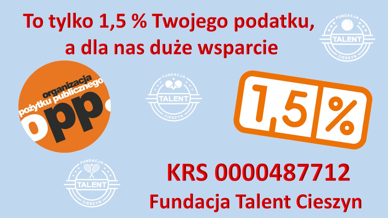 Prośba o wsparcie Prośba o wsparcie Drodzy Sympatycy i Kibice Fundacji Talent Cieszyn Zawodnicy trenują w naszym klubie z pasją i zaangażowaniem,...Dowiedz się więcej