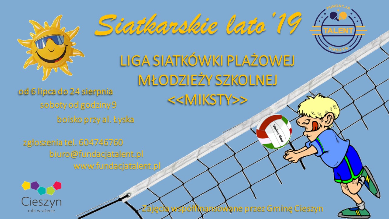 Siatkarskie Lato’19 Siatkarskie Lato’19 Już od 6 lipca rusza nasza liga siatkówki plażowej. Cieszyńską młodzież zapraszamy do rywalizacji mikstów na piasku....Dowiedz się więcej