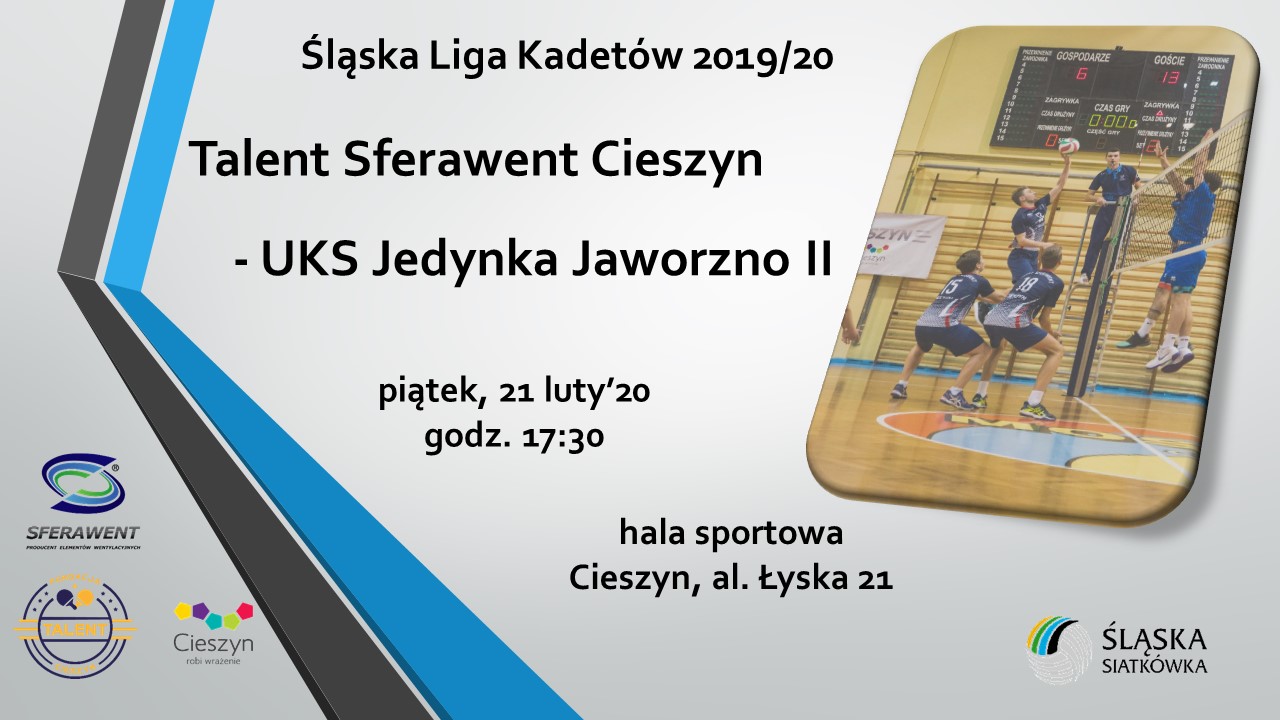 Talent Sferawent Cieszyn – UKS Jedynka Jaworzno II, piątek, 21.02.2020 r. g.17:30, hala przy al. Łyska 21 Cieszyn