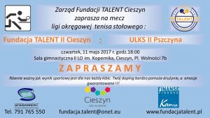 Ostatni mecz sezonu. W najbliższy czwartek 11 maja nasza II drużyna zakończy swój udział w rywalizacji ligi okręgowej sezonu 2016/17 podejmując u siebie drugi zespół ULKTS Pszczyna. Kibiców zapraszamy na godzinę 18 do sali Kopernika ! Zobacz wpisy Poprzedni VII runda ALS wiosna’17 dla KrawaciarzyNastępny Walkower z Pszczyną.