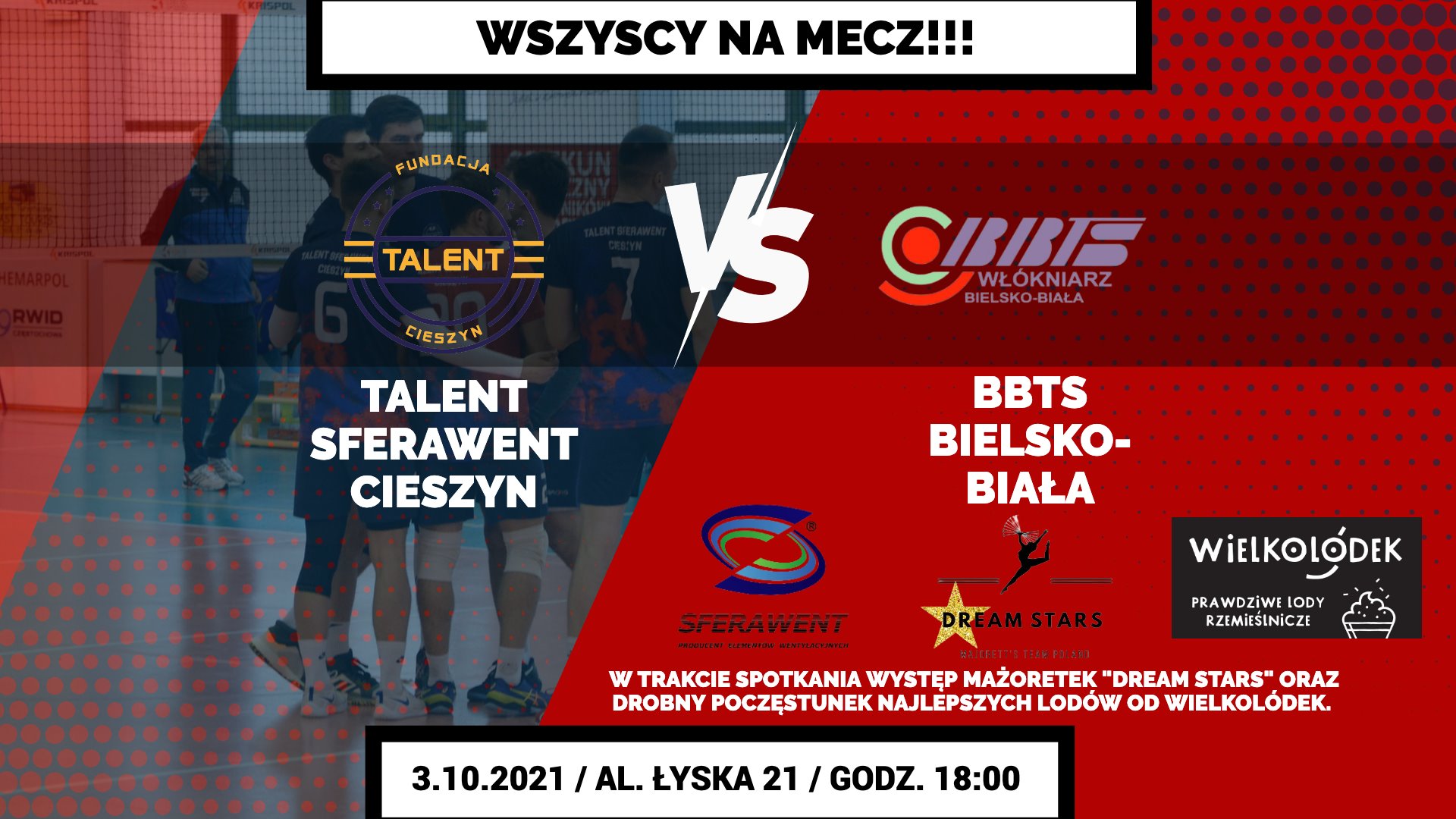 1 Liga Śląska Talent Sferawent Cieszyn – BBTS Włókniarz Bielsko-Biała, niedziela 3 października, g.18:00, hala sportowa przy al. Łyska 21.