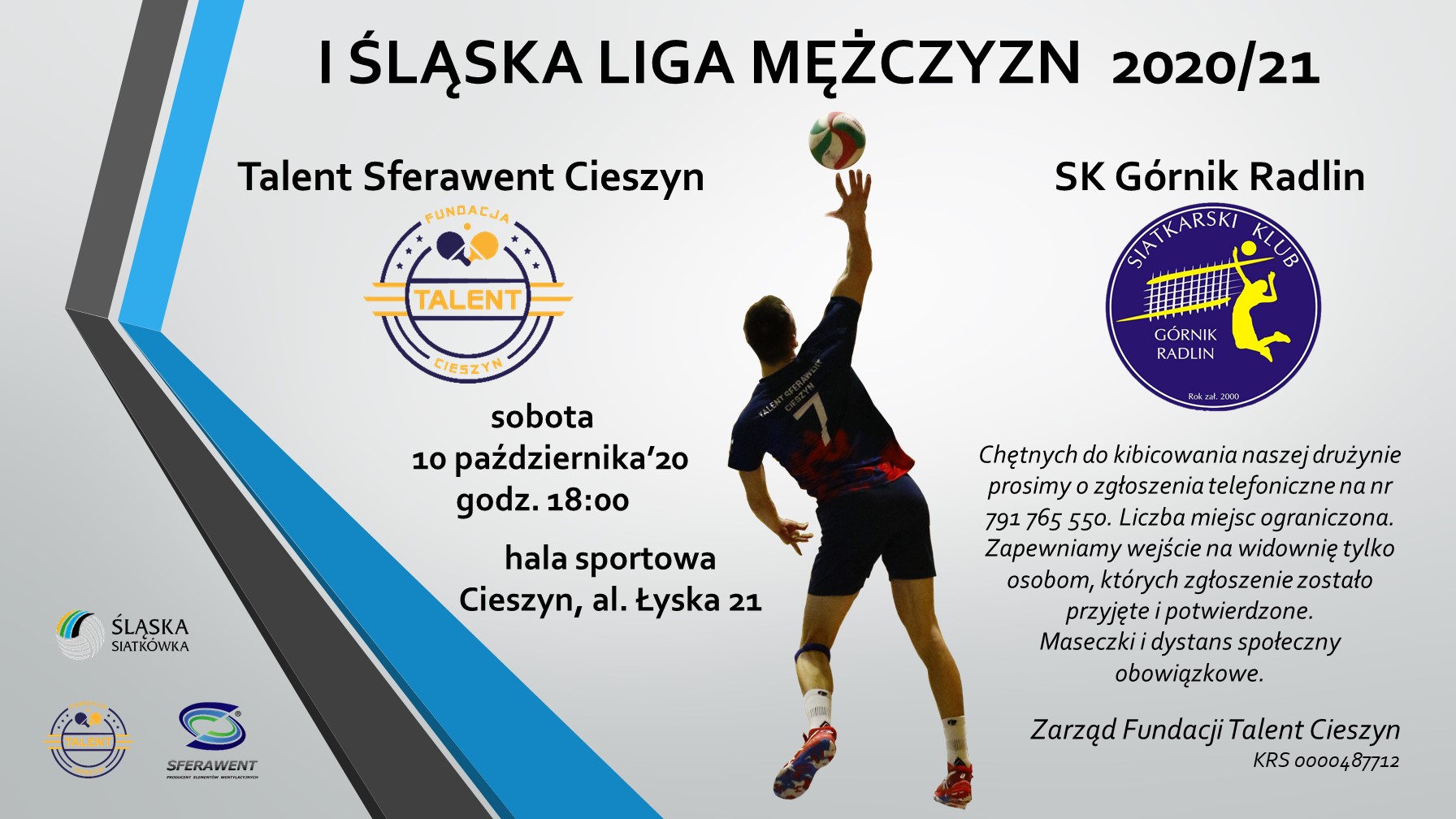 Już jutro (w sobotę 11 października) o godzinie 18 w hali przy al. Łyska nasz Talent Sferawent Cieszyn zmierzy się w trzecim pojedynku I Ligi Śląskiej z SK Górnik Radlin. Po dwóch wygranych liczymy na kolejny udany występ ekipy Michała Zająca.