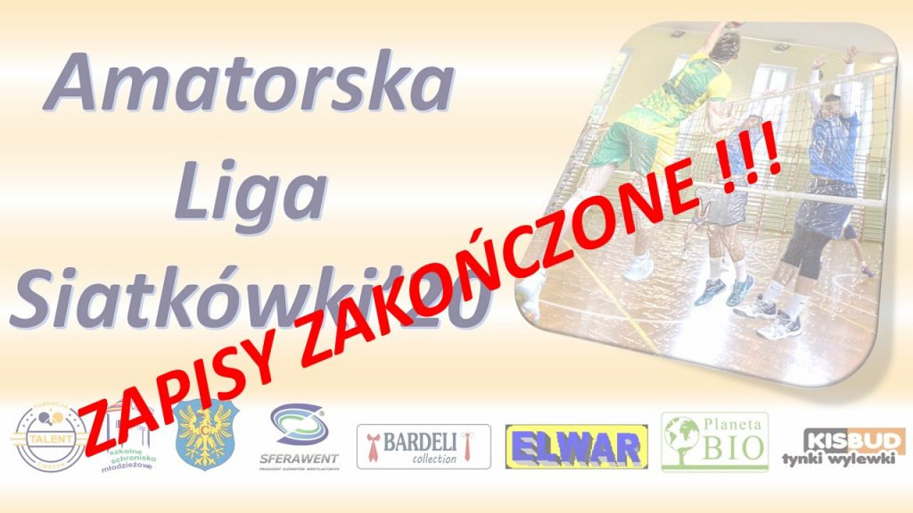 Zainteresowanie tegoroczną wiosenną edycją Amatorskiej Ligi Siatkówki przerosło nasze oczekiwania, a żeby nie poddać się organizacyjnie jesteśmy zmuszeni w tym momencie zakończyć przyjmowanie drużyn. Już niebawem pełna ich lista, regulamin i harmonogram rozgrywek.